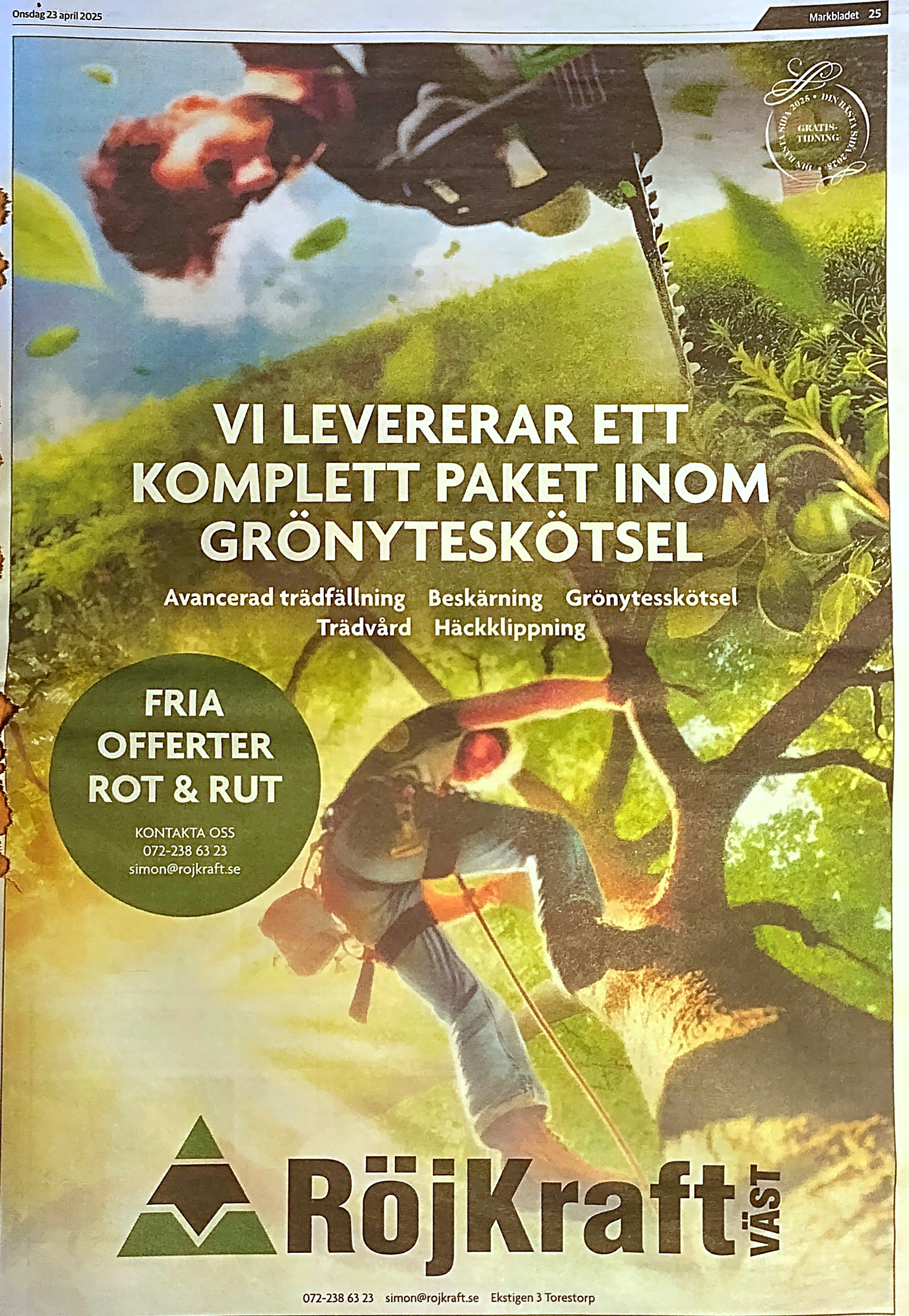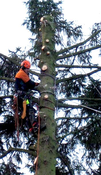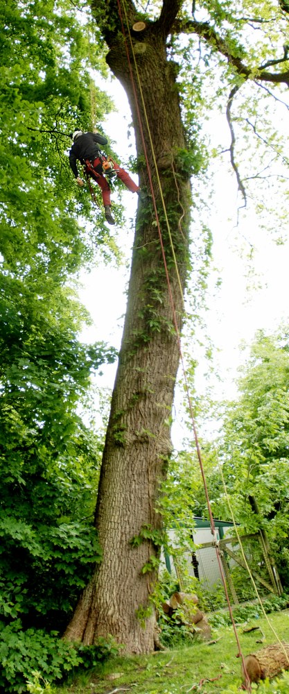 trädklättring inkl. sektionsfällning, trädvård och beskärning.